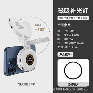 跨境爆款W50自拍手机磁吸补光灯便携LED柔光补光灯直播美颜打光灯