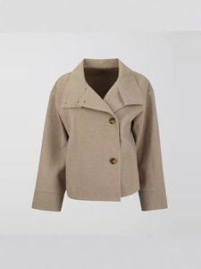 跨境欧美2025秋冬新款女装亚马逊气质优雅立领纽扣长袖毛呢外套