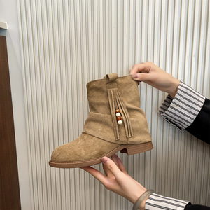 牛皮版~堆堆靴女2025新款秋冬季切尔西靴女美拉德气质百搭短靴