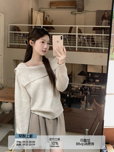 乌温柔风一字领长袖毛衣女秋季新款套头宽松慵懒感毛针织衫上衣