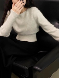 早秋新款一字领收腰短款山羊绒女欧货秋冬软糯短打底羊毛毛衣