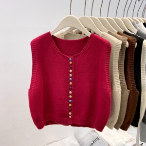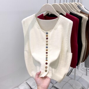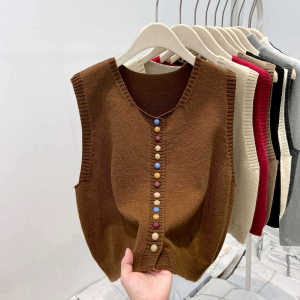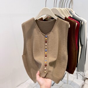 高级感灰色针织坎肩女2025春秋冬季流行chic纽扣马甲叠穿开衫毛衣