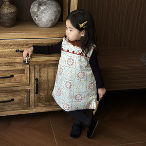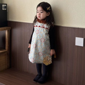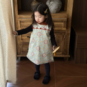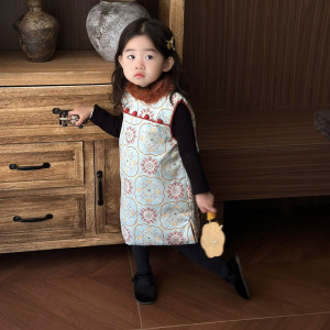 中秋儿童汉服周岁旗袍裙秋冬女童高质感复古提花背心裙小女孩童装