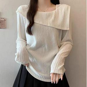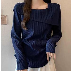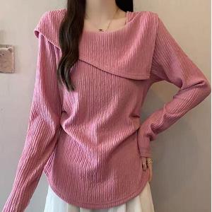 胖暑 秋季新款甜美减龄不规则正肩收腰洋气显瘦恤