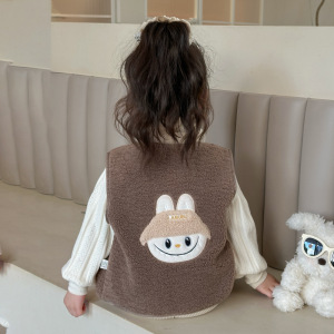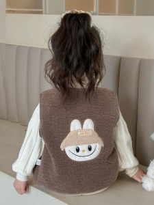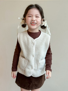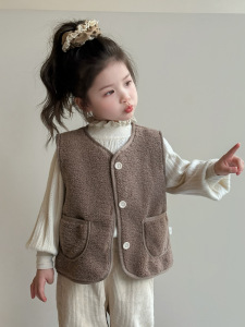 女童可爱羊羔绒马甲外套2025秋冬装新款儿童洋气冬季宝宝毛毛马夹