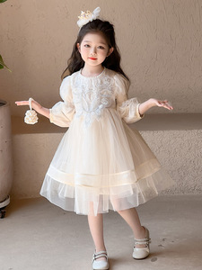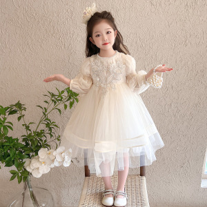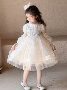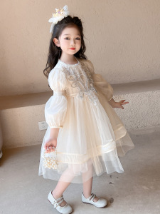 女童公主裙春秋2025新款儿童洋气生日礼服花童秋装女孩长袖连衣裙