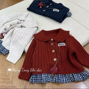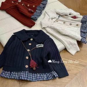 纯色休闲风女童单排扣毛衣常规套装甜美外套女童裤子两件套