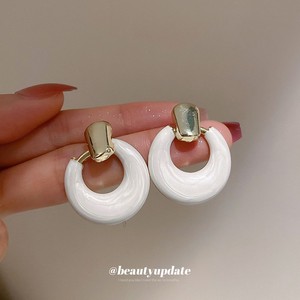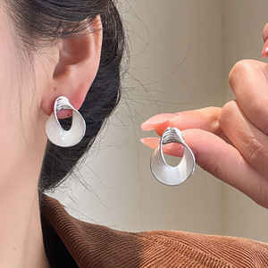 银针滴油圆形扭曲白色系方形耳钉女简约百搭耳环小众设计感耳饰女