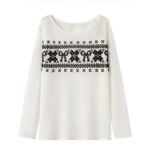 现货2025秋季新款气质优雅蝴蝶结提花串珠圆领针织衫女70601104