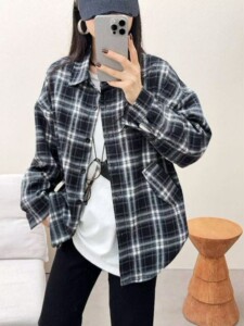 复古美拉德磨毛大码格子衬衫外搭女休闲宽松显瘦慵懒风衬衣上衣潮