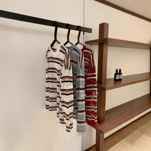 WGWE7348复古撞色条纹宽松慵懒风设计感小众高级感长袖T恤