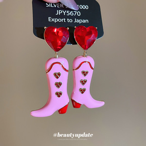 银针镶钻滴油爱心高跟鞋吊坠耳环甜美气质耳坠耳钉小众设计感耳饰