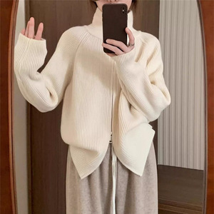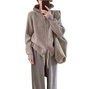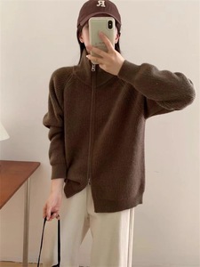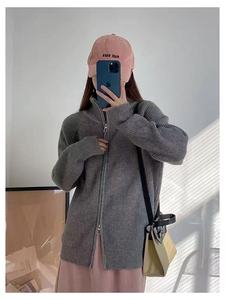 双拉链设计感毛衣开衫女跨境新款宽松坑条针织衫休息上衣外套女