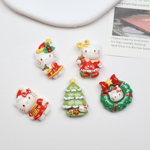 卡通圣诞树小猫配饰奶油胶树脂配件手工发夹钥匙扣鞋扣吊坠配饰材