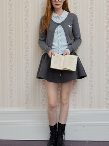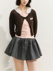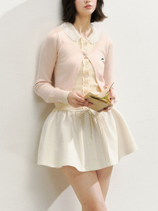 SunsetParka日落公圆"乖巧学院派"蕾丝领假两件设计感miu针织上衣