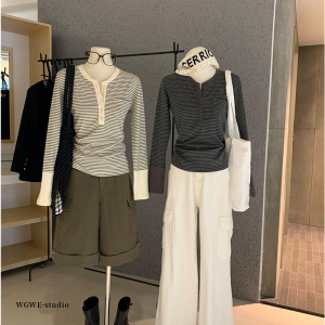 WGWE7208半开领小众T恤弹力修身打底衫内搭外穿长袖chic上衣