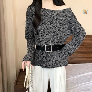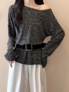 时尚豹纹露肩长袖T恤女装早秋穿搭2025新款大码胖mm收腰小衫上衣