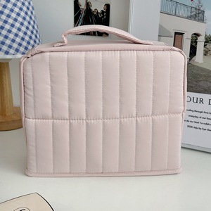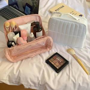 韩系立式化妆包大容量简约纯色收纳包出差旅行分区分层手提洗漱包