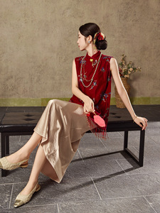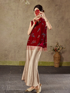 新中式国风秋季2025新款红色刺绣流苏高端马甲气质半裙套装 N9024