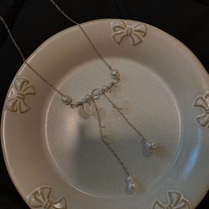 复古珍珠贝壳流苏拼接项链女款时尚设计感锁骨链配饰颈链