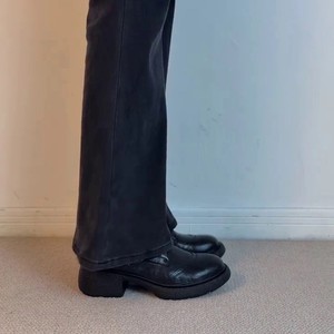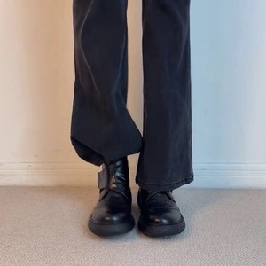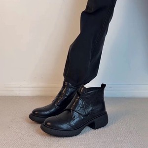 软皮版~粗跟短靴秋冬法式复古百搭魔术贴时尚漆皮辣妹风厚底短靴