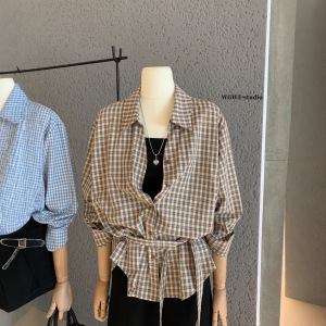 WGWE7453百搭通勤风格纹舒适简约宽松休闲衬衫