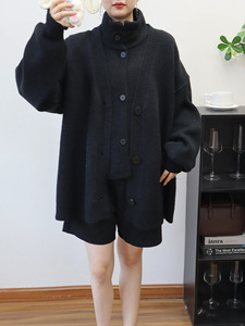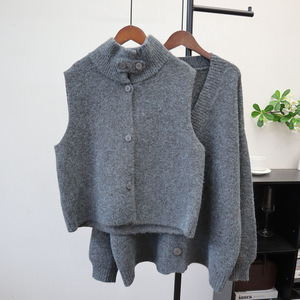 2025秋冬新款加厚针织马甲毛衣外套两件套韩版宽松百搭毛衣套装女