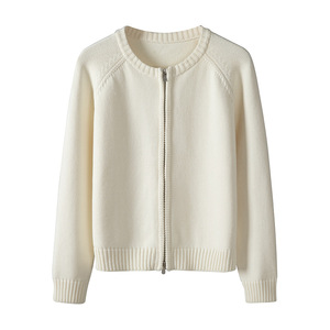 100%纯棉线女士秋冬季毛衣双头拉链春季针织开衫外套加厚款外穿