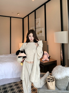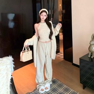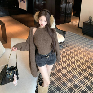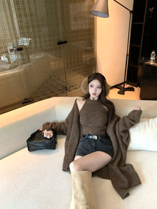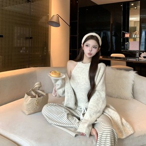 RHGD实拍2025 软糯宽松中长款毛衣开衫性 感挂脖吊带背心两件套