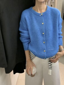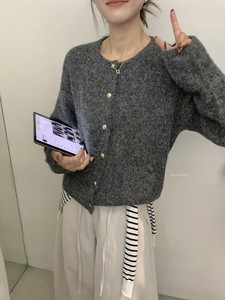 miss密思家 秋冬经典复古风设计感金扣厚实保暖开衫毛衣女A08805