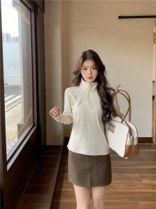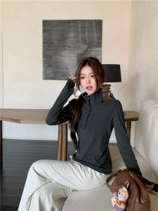 (半拉链小蛮腰)立领女大码胖mm小蛮腰半拉链宽松显瘦 打底绒衫