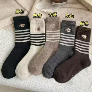 秋冬季加厚ins中筒袜保暖复古日系美拉德冬天长袜条纹小狗袜子女