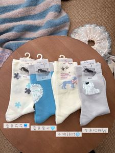 蓝色之恋 复古y2k精梳棉无骨堆堆袜子女韩国手工袜卡通小狗蝴蝶结