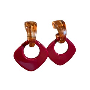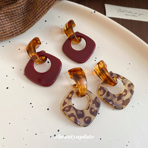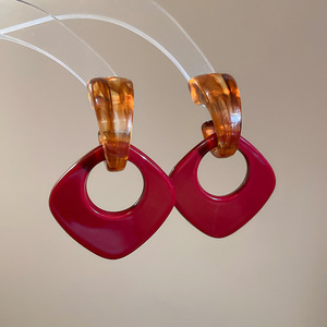 银针树脂方形镂空吊坠耳环复古港风气质耳钉耳坠小众设计感耳饰女