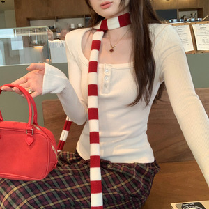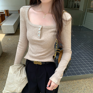 韩版轻熟灰色荡领长袖t恤女早秋2025新款内搭打底单穿打底衫上衣