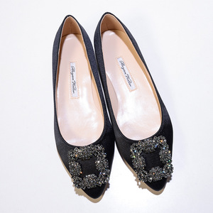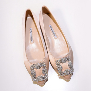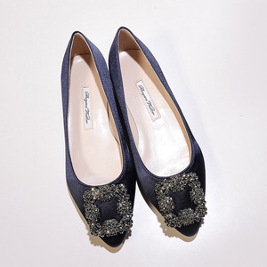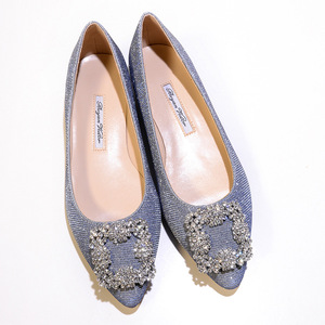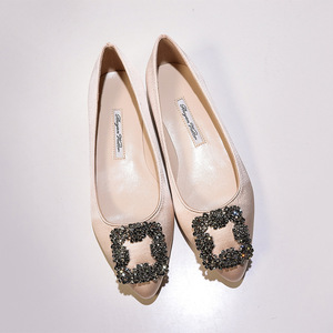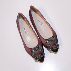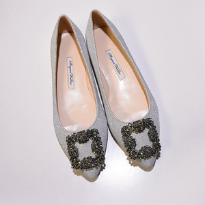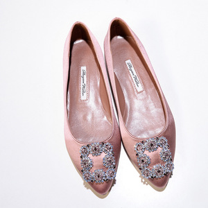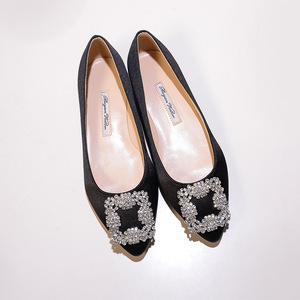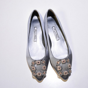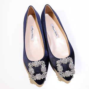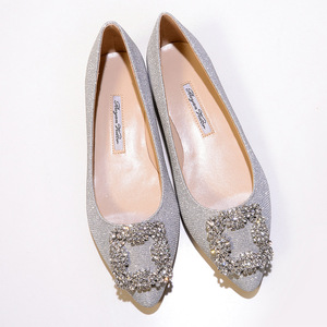 现货 一件代发 mb por尖头方扣平底鞋女雪花扣水钻单鞋绸缎婚鞋