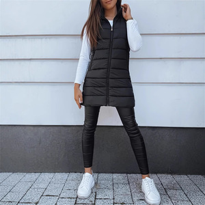 跨境欧美2025亚马逊纯色连帽拉链棉马甲外套女装中长款大码
