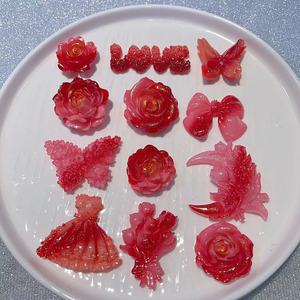 【扎染细闪国庆红系列混款】萤火虫夜光 红金树脂配件洞洞鞋头绳