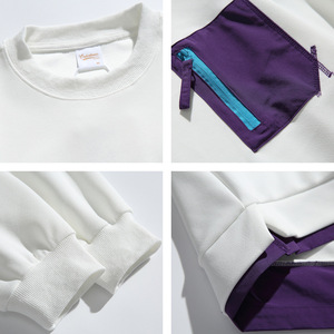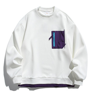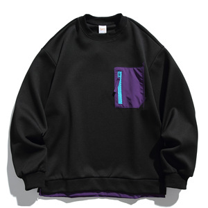 日系复古口袋撞色拼接圆领工装卫衣男女宽松休闲假两件套头衫潮