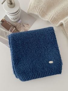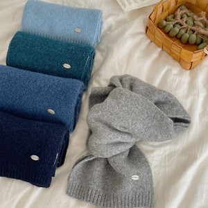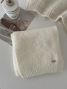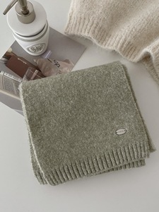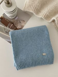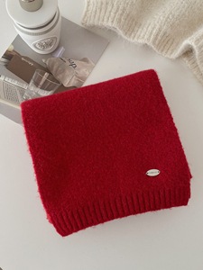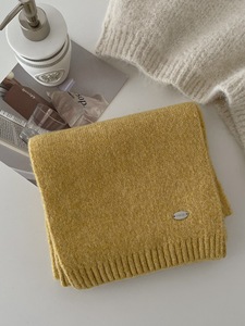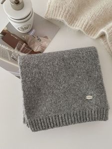 出口韩国~含羊毛纯色针织围巾女2025冬季加厚保暖百搭高级感围脖