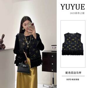 25几何拼色国风马甲秋冬季摆丝绒气质减龄叠穿复古衣无袖坎肩丝绒