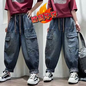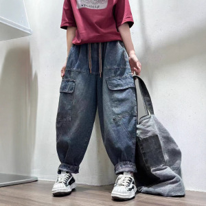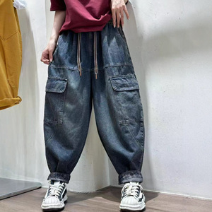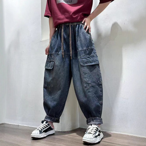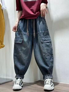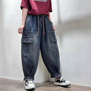 2025秋季新款韩版宽松水洗拼接做旧松紧腰哈伦裤百搭个性休闲裤女