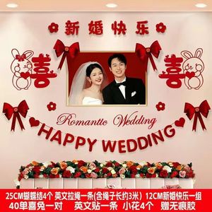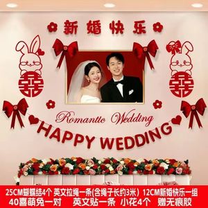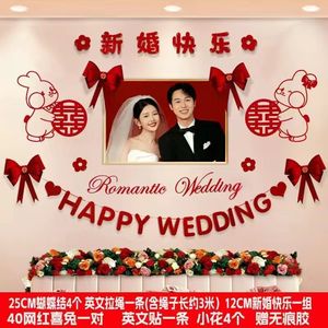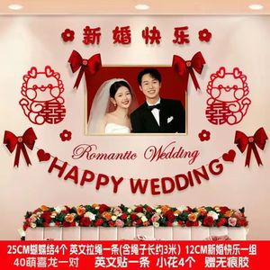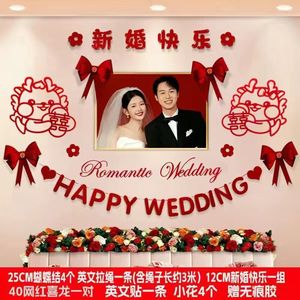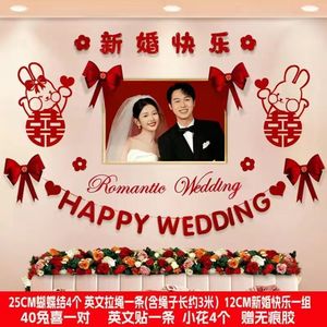 主卧婚房布置简约大气婚礼房间婚庆卧室床头婚纱照背景墙装饰结婚