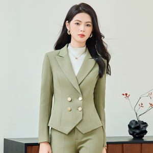 时尚双排扣西服职业套装两件套裤秋冬季短小西装外套女主持人正装