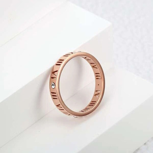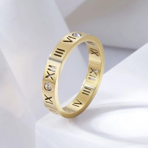 韩版高级感ing潮 钛钢情侣戒指女罗马数字镶锆石戒指男流行饰品