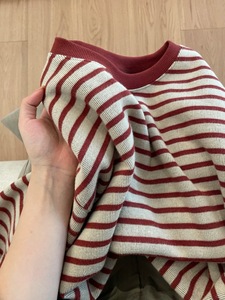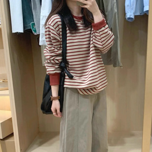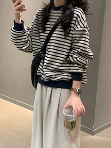 美式复古撞色软糯条纹圆领卫衣女春秋季小众学院风高级感长袖上衣