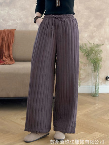 亚麻夹棉棉裤女2025冬季新款复古文艺宽松阔腿显瘦加厚直筒休闲裤