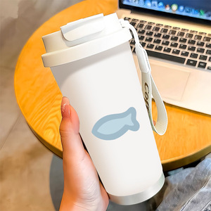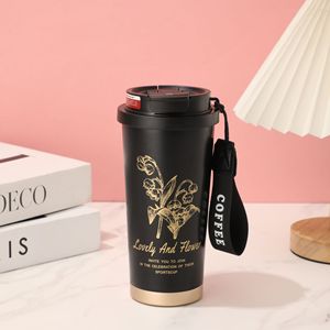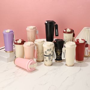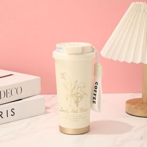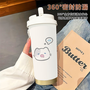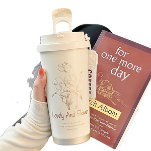 316不锈钢保温杯一盖两用家用便携双饮杯图案铃兰花咖啡杯吸管杯