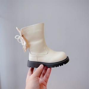 2025冬季新款童鞋小女孩甜美蝴蝶结公主靴韩版加厚保暖女童时装靴