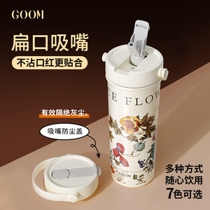 GOOM繁花似锦保温杯女水杯大容量女生高颜值便携吸管杯子礼品物